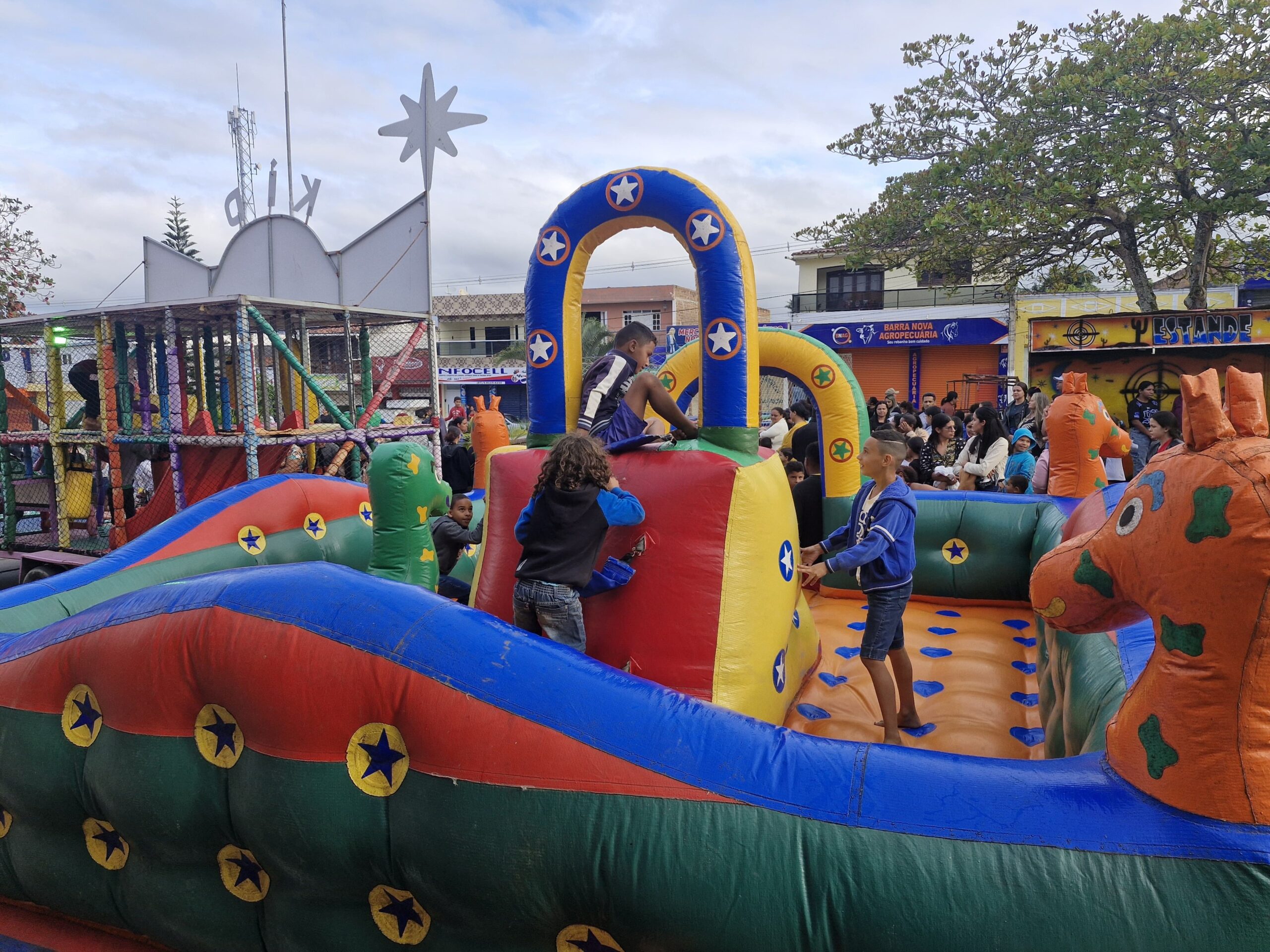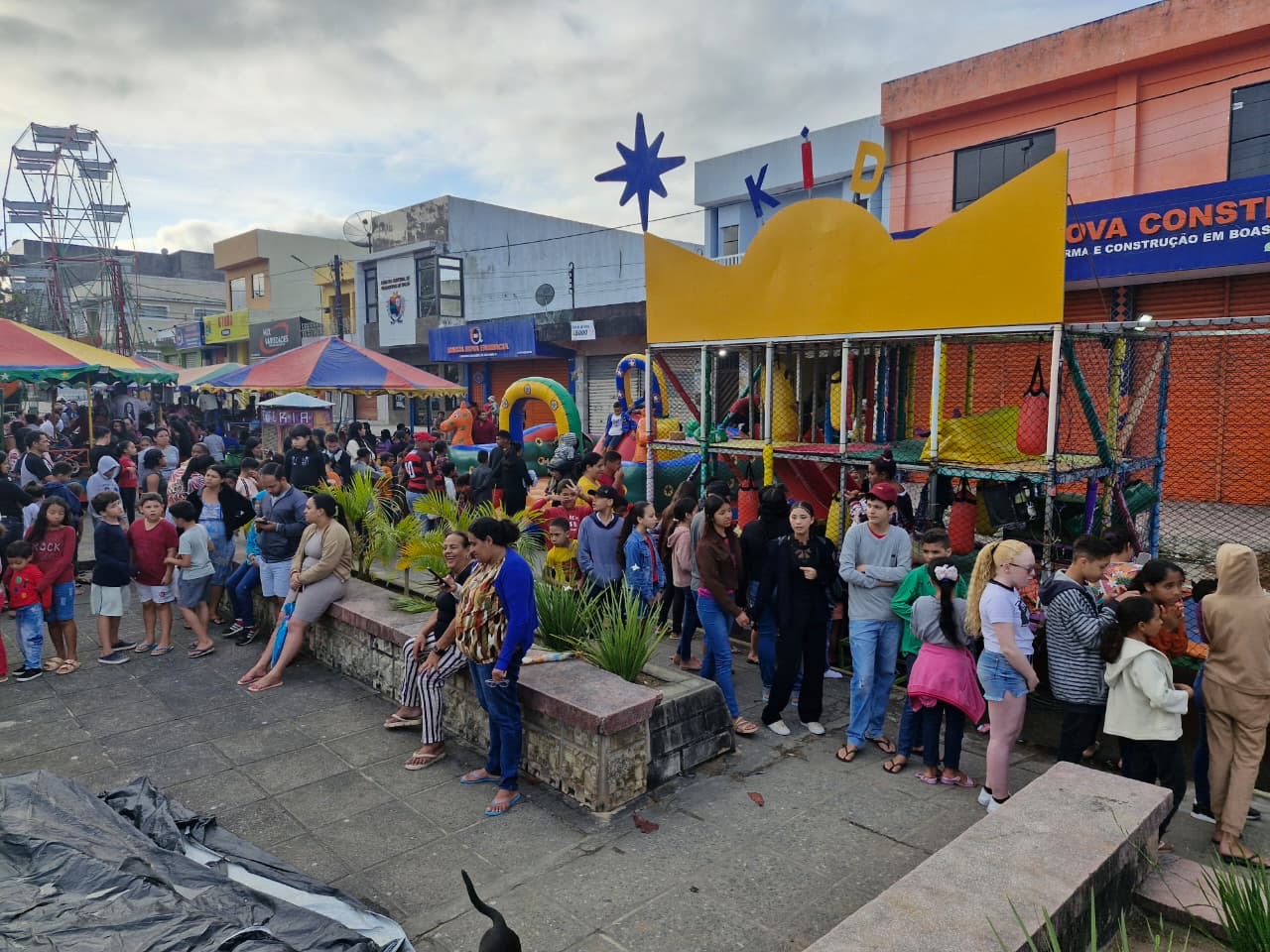 Desde cedo, famílias inteiras ocuparam a praça central, que se transformou em um verdadeiro espaço de lazer e confraternização. Brinquedos infláveis, cama elástica, roda-gigante, barco viking e outras atrações fizeram a alegria da garotada, que aproveitou cada momento.
