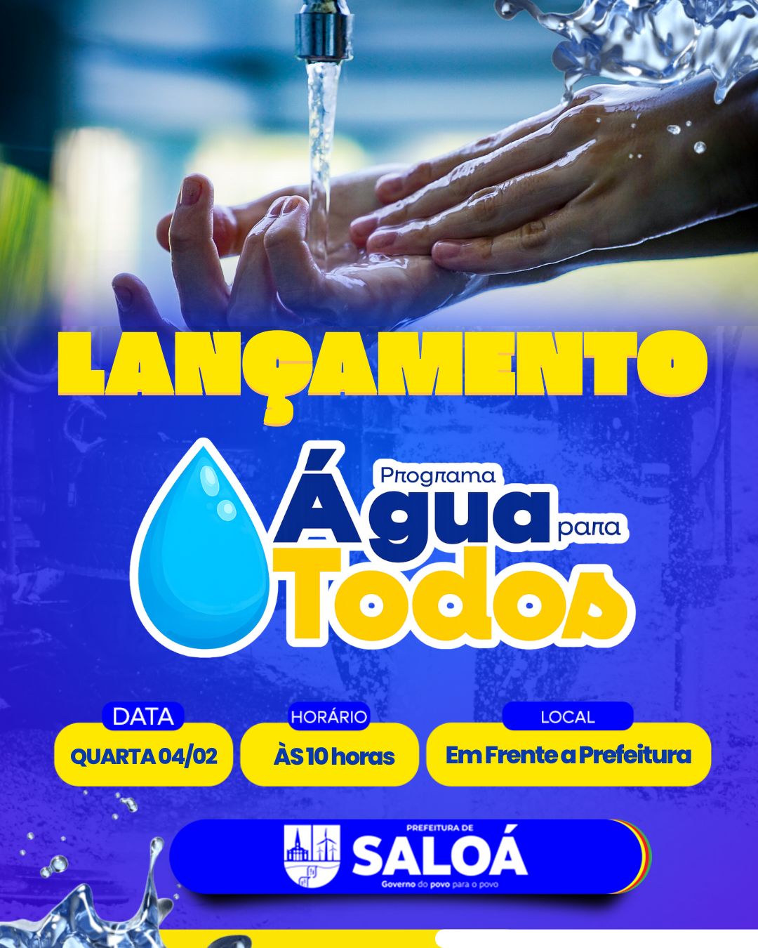 A Prefeitura Municipal de Saloá irá realizar, na quarta-feira, dia 4, o lançamento do Programa Água para Todos, uma importante iniciativa voltada à ampliação do acesso à água e à melhoria da qualidade de vida da população.