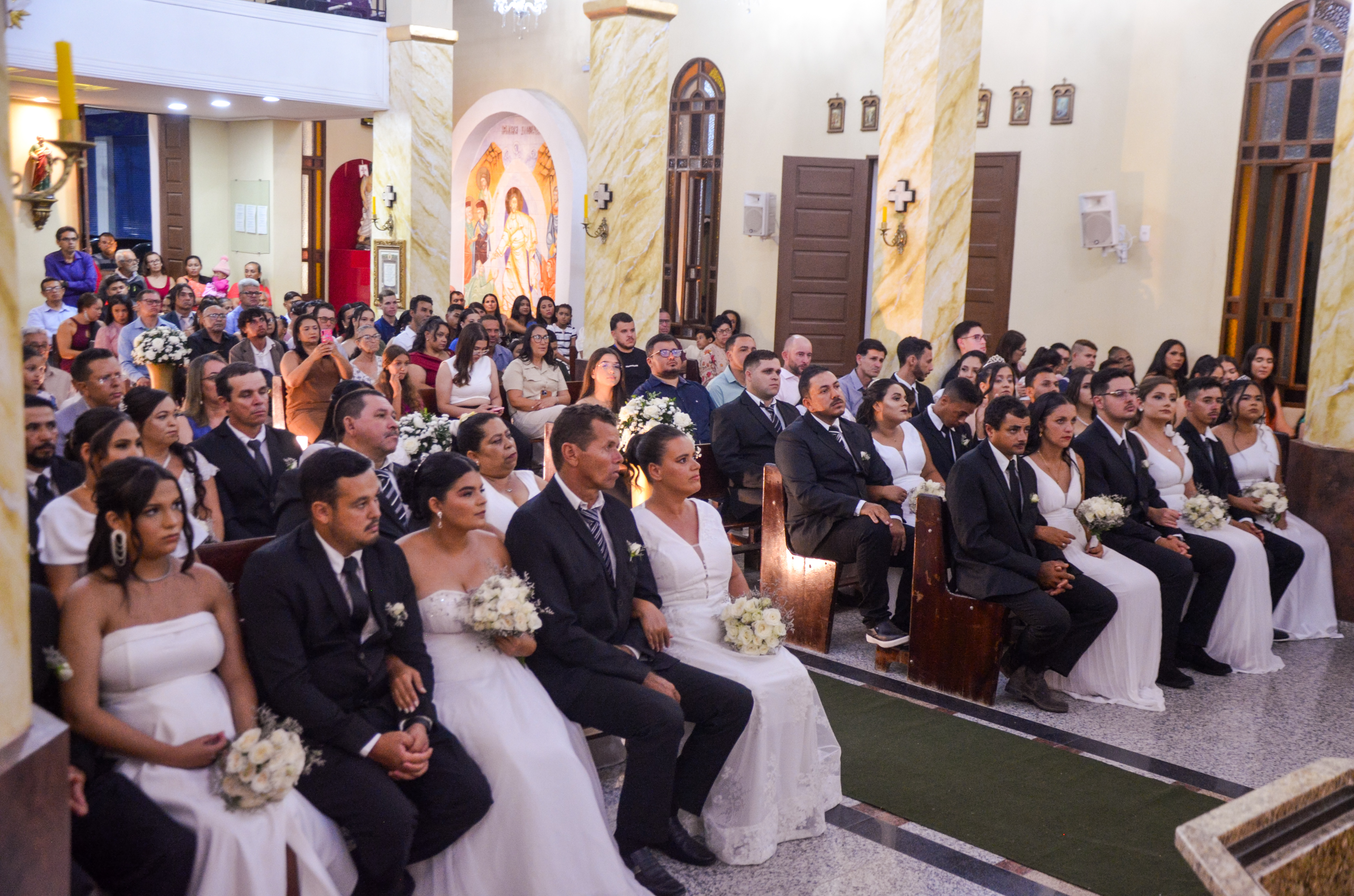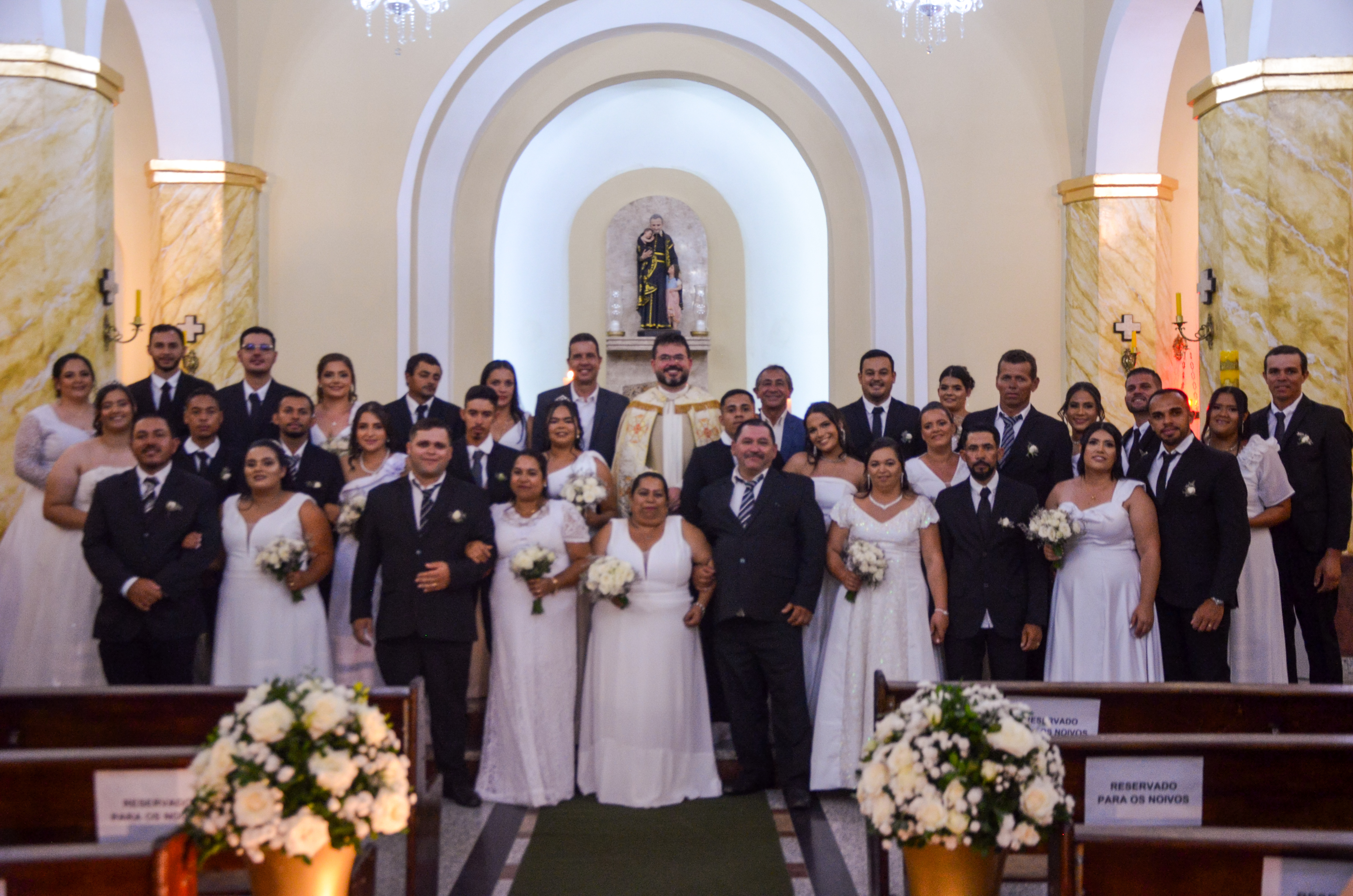 Ao todo, 22 casais participaram desta edição, concretizando um sonho aguardado por muitos e vivendo um momento marcado pela emoção, pela alegria e pelo fortalecimento dos laços familiares. A cerimônia religiosa, realizada na Igreja, marcou o início da celebração, reunindo familiares, amigos e a comunidade saloaense, que acompanharam cada instante repleto de significado. Em seguida, os casais oficializaram também o casamento civil, garantindo a regularização jurídica da união.